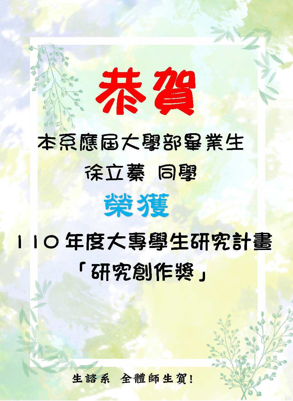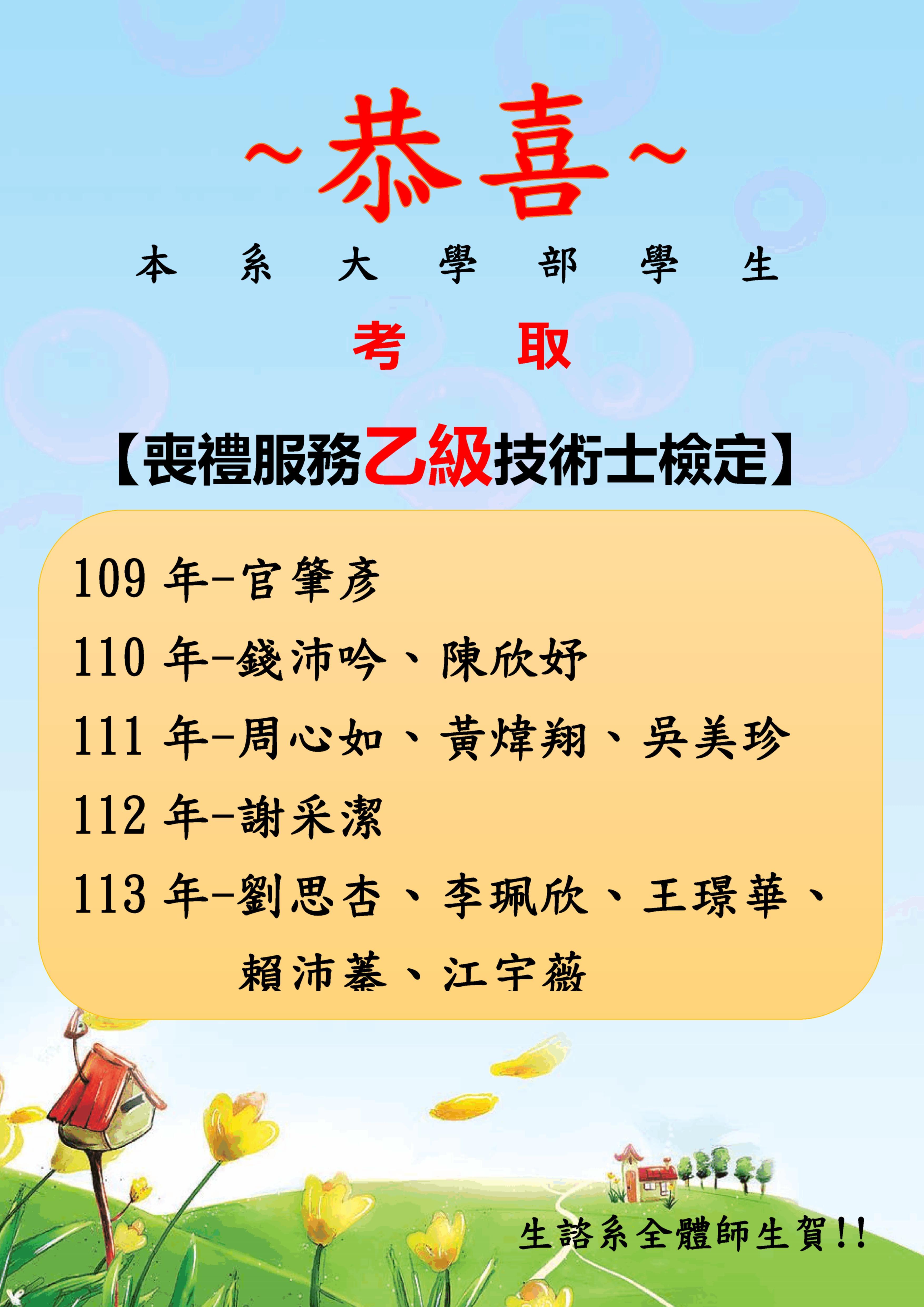 | 【關懷友善社區介紹】 | 【聽聽畢業學長姊-說說念完本系之學習】 | 【112年教育部生命教育特色學校、績優人員及微電影競賽頒獎典禮開幕影片(5:14葉明理老師)】 |